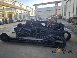 旋轉(zhuǎn)式皮帶輸送機(jī)其結(jié)構(gòu)是在平形橡膠運(yùn)輸帶兩側(cè)粘上可自由伸縮的橡膠波形立式"裙邊”, 在裙邊之間又粘有一定強(qiáng)度和彈性的橫隔板組成匣形斗,使物料在斗中進(jìn)行連續(xù)輸送。擋邊帶式輸送機(jī)可廣泛用于煤炭、糧食、建材、化工、水電和冶金等部門,在環(huán)境溫度為- 19°C ~ +40°C范圍內(nèi),輸送堆積比重為0.5-2.5t/m3的各種散狀物料。對(duì)于輸送有特殊要求的物料,如高溫、具有酸、堿性、油類物質(zhì)或有機(jī)溶劑等成分的物料,需采用特殊的擋邊輸送帶。
